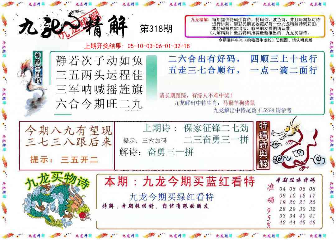 318期: 特码三行 【水火金】 开?00准